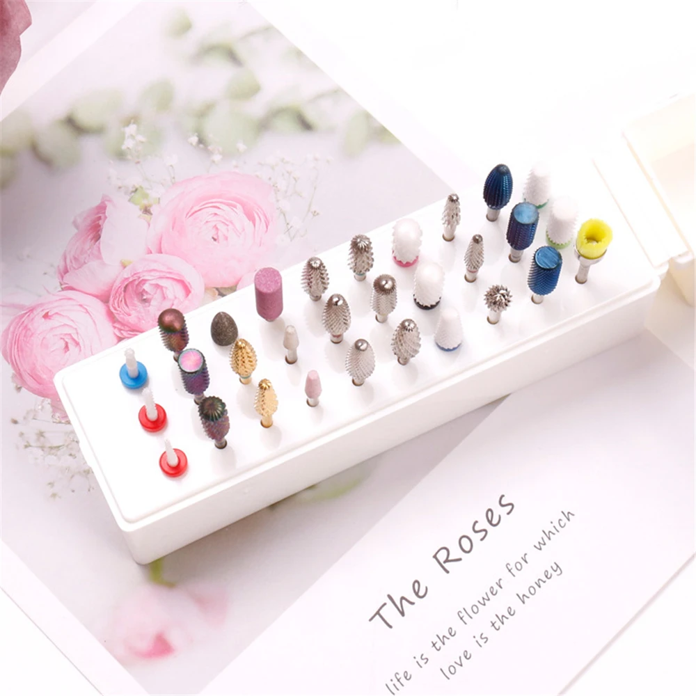 Коробка для хранения шлифовальной головки Электрический маникюр ногтей 30 отверстий для сверл и ногтей Аксессуары для инструментов