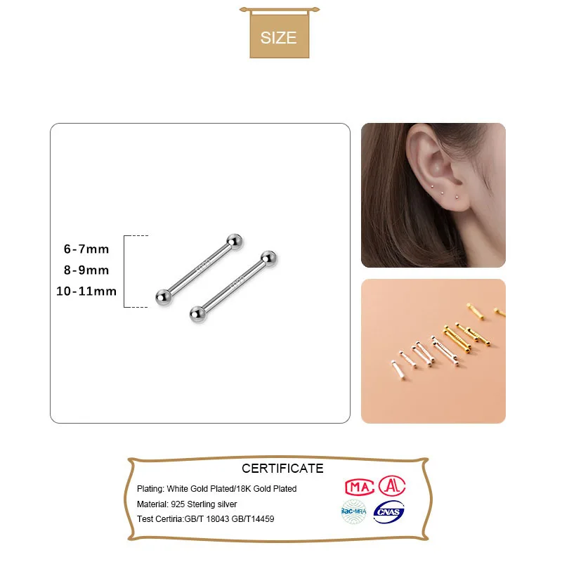 Ювелирные изделия Для Пирсинга Ушей из серебра пробы, 3 размера