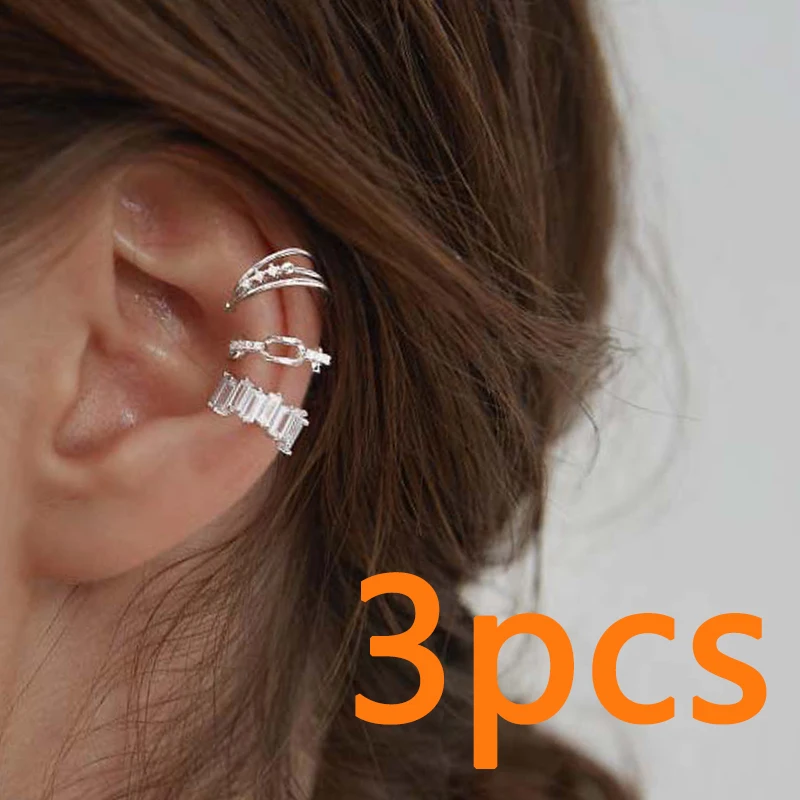 Серьги-клипсы Женские Геометрические, с цирконом, 3 шт.набор