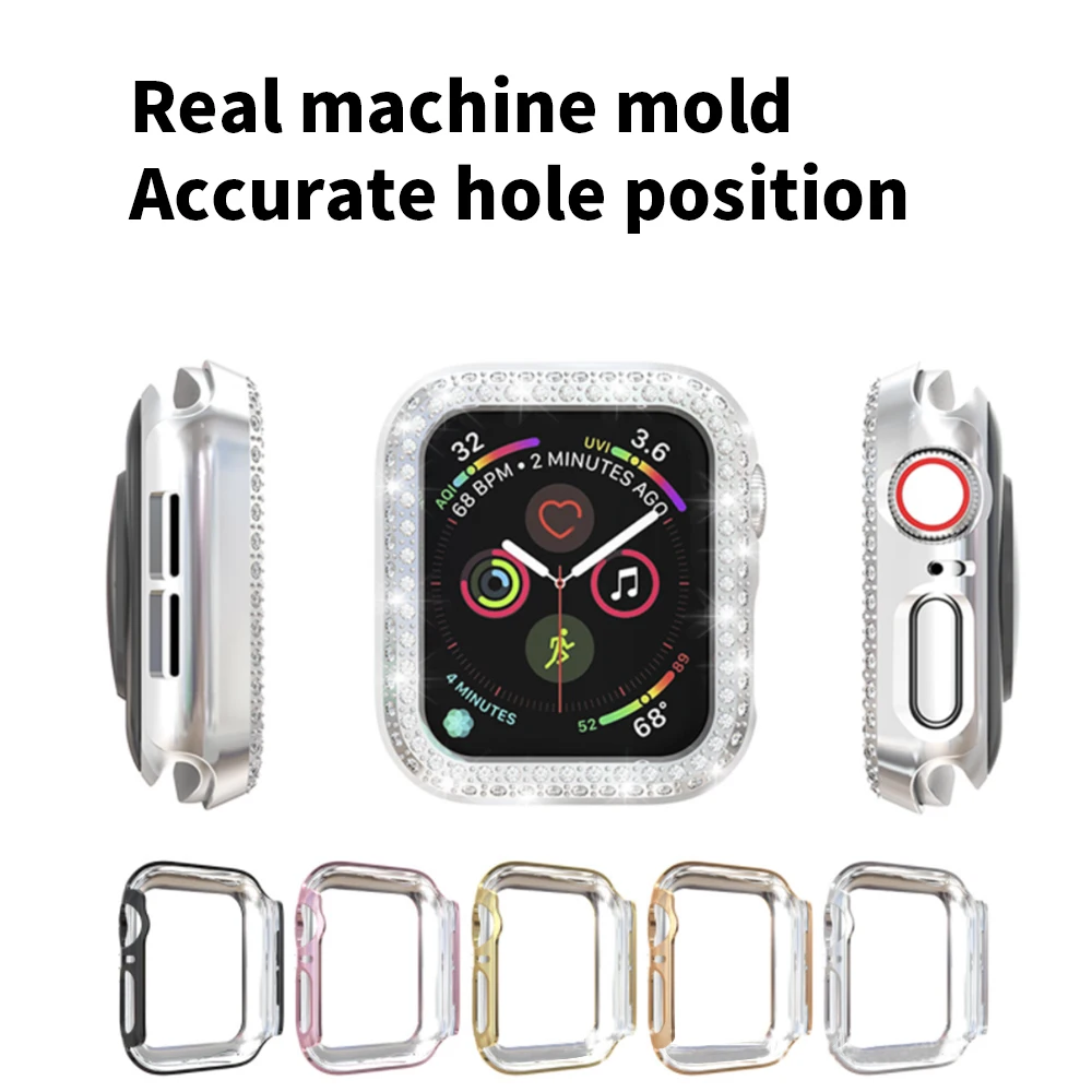 Чехол для Apple Watch 44 мм 40 мм, бампер, аксессуары, чехол, половина упаковки, двойной Алмазный защитный чехол для iWatch серии 6 SE 5 4 3 2 1