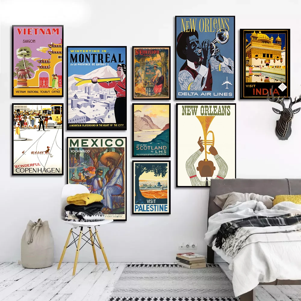Плакаты WTQ с изображением знаменитого города, путешествий, мультипликационных картин, Мехико, Монреаль, Новый Орлеан, настенная живопись, картины, абстрактное украшение для дома