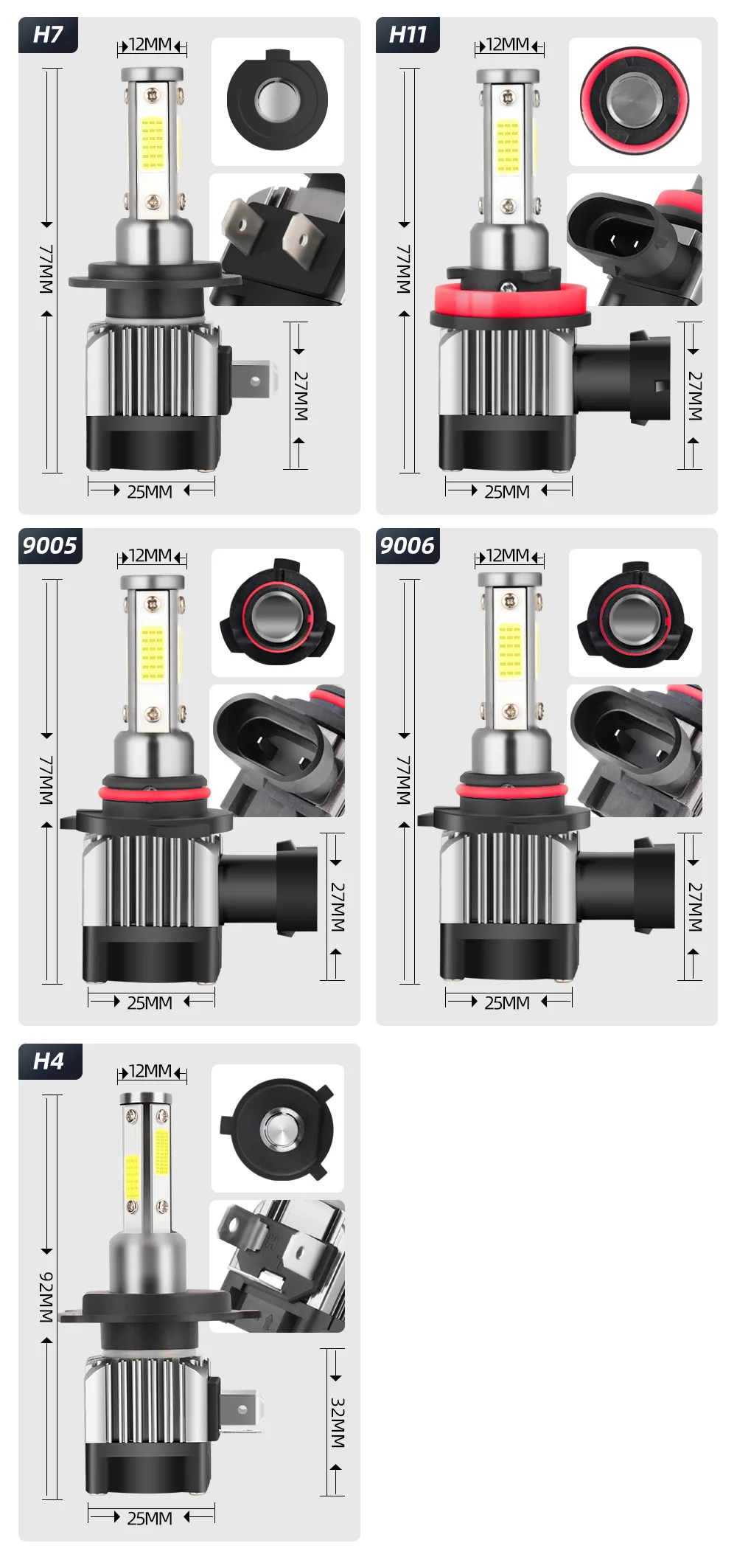 Socket TypeH1 H3 H4 H7 H8 H9 H11 9004 9005 9006 9007