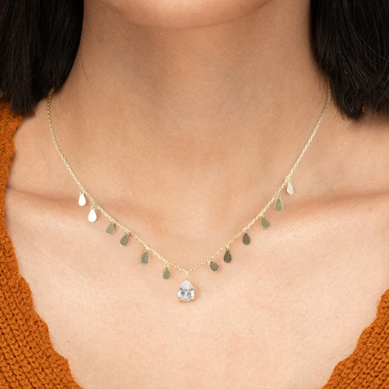Aide 925 пробы серебра в форме капли воды циркон любовь подвески роскошные прямоугольник Очаровательная Божья коровка пижамы толстая цепочка колье, ювелирные изделия