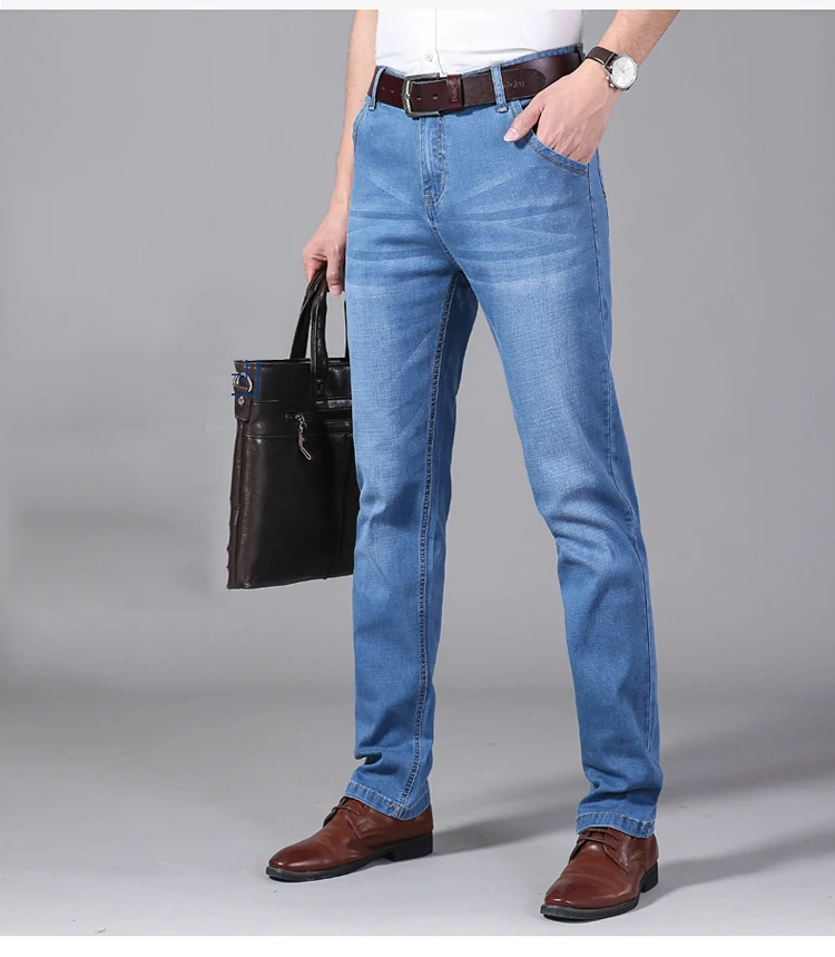 Джинсы мужские прямые, модные брюки из денима, легкие Стрейчевые брюки со средней посадкой, в деловом стиле, повседневные, размеры 28-40, на осень