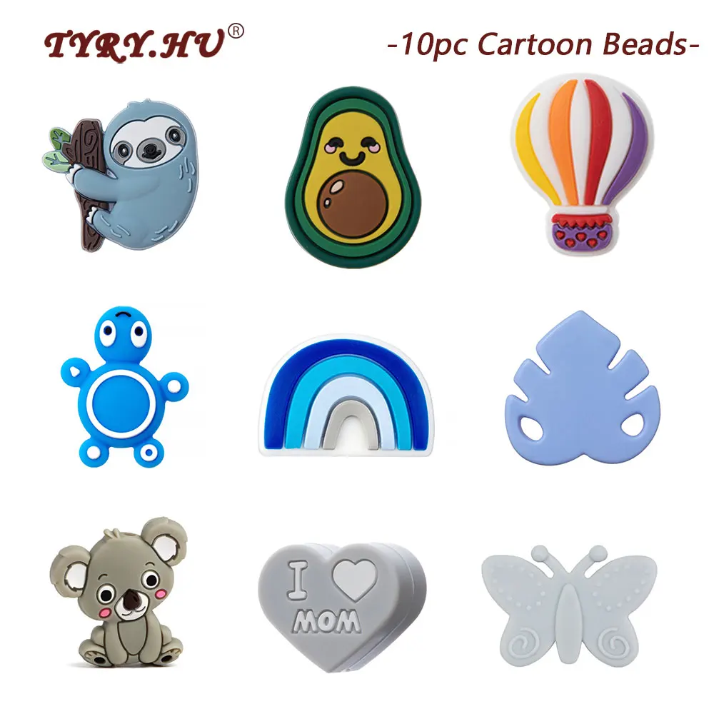 TYRY.HU 10 шт. силиконовые бусины черепаха мультяшный Ленивец коала силиконовые бусины для прорезывателя без БФА детская игрушка для прорезывания зубов Сделай Сам грызунок младенцев