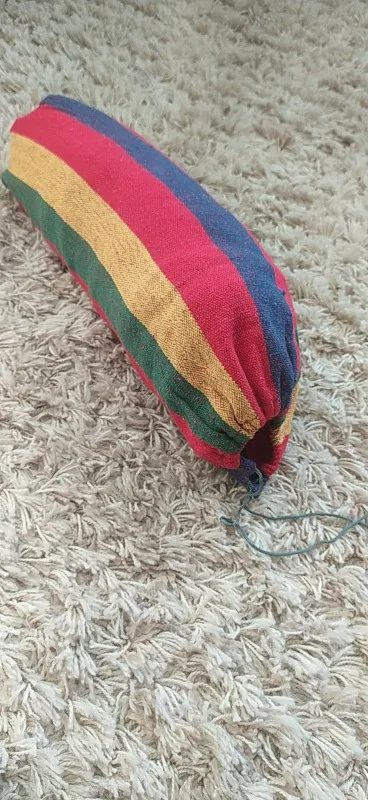 Гамак пришел очень-очень маленький. На фото другой гамак. Качество и комплектация хорошие. Но реальный вид вообще не соответствует размеру по фото. В реальности он так не расправится - узкий.