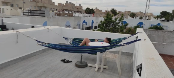 Нет es para dos personas, es una hamaca muy pequena que solo puede utilzar una persona delgada o un nimino. Это не для двух, это очень маленький гамак, который может использоваться только одним узким человеком или ребенком.