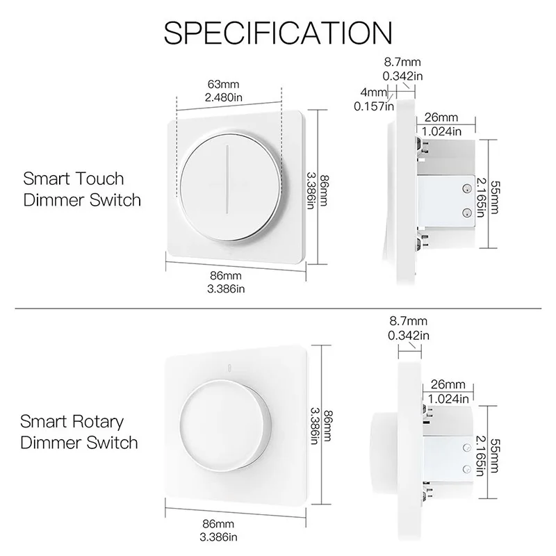 Wi-Fi умный поворотный/сенсорсветильник переключатель света SmartLife/Tuya APP пульт дистанционного управления работает с Alexa Google Assistant Голосовое управление по расписанию ЕС, Семейный доступ Примечание: Пожалуйста, помогите выбрать правильный вариант перед заказом Версия Zigbee должна работать с концентратором Zigbee для реализации интеллектуальных функций. Основные характеристики: 1. Новый дизайн с поворотными функциями для приглушения светильник с регулируемой поддержкой; Функция памяти яркости при отключении питания для умного освещения вашей жизни в другой концепции; Совместимость с различными диммируемыми лампами, такими как светодиоды 200 Вт, CFL, 300W INC. Установите этот переключатель возле электрического ящика, где находится линейный провод. 2. Режим управления без помех; Позволяет управлять переключателем через приложение Smart Life, сенсорное управление и голосовое управление; Каждый метод управления работает независимо; Достижение мультиуправления путем подключения к другим умным переключателям 3. Совместим с Alexa и Google Home для голосового управления без помощи рук с регулируемой яркостью 0%-100%; Также может управляться через приложение Smart Life/Tuya в любое время и в любом месте; 4. Возьмите полный контроль над подключенными приборами с помощью автоматических таймеров, расписаний и обратного отсчета (5/30 минут, 1 час и т. д.) с помощью приложения; Поделитесь контролем с семьей и друзьями для дополнительного удобства; настройте светильник, чтобы он потускнел одним щелчком переключателя регулятора яркости Alexa, чтобы защитить глаза от сисветильник. 5. В коробки переключателей требуется нейтральный провод для правильной работы; Поддерживает только сеть 2,4 ГГц Характеристики: Входная мощность: 100-240 В переменного тока, 50-60 Гц Контроль затемнения: кромка триака Индуктивная нагрузка светодиодный/CFL) : 220 Вт макс. Резистивная нагрузка (лампа накаливания) : 300 Вт макс. Связь: Wi-Fi 802,11 b/g/n 2,4 ГГц Канал управления: 1 канал Мощность в режиме ожидания: ≤ 0,5 Вт Рабочая температура: -10 ℃-45 ℃ Рабочая влажность: <90% Размер: 86*86*53,5 мм