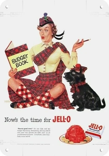 Оловянные картины в стиле ретро 1952 Jelly Jell-O, женская и шотландская собака, копия металлической пластины