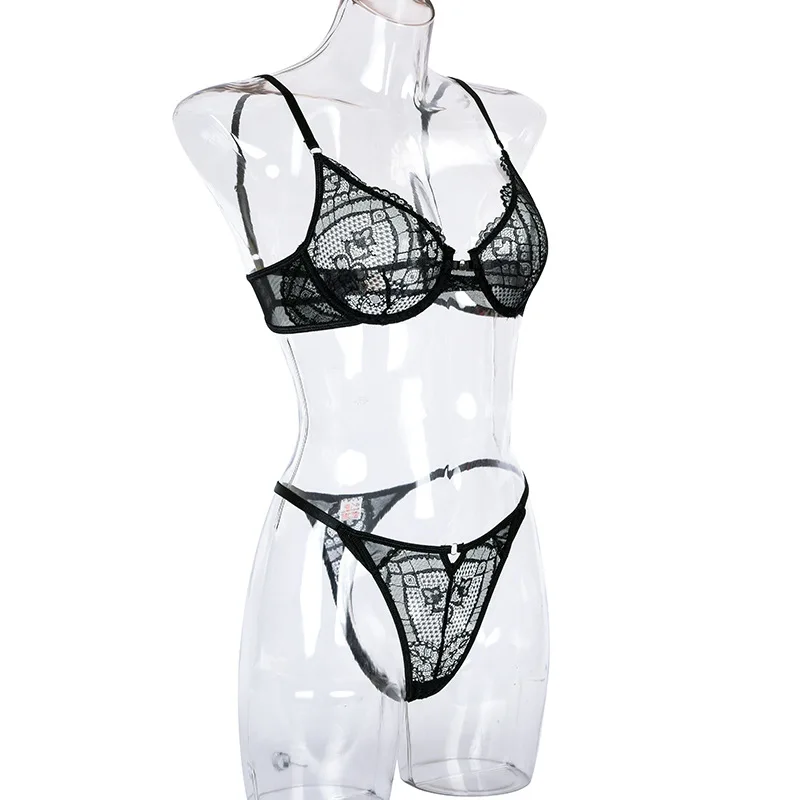 Комплект женского кружевного нижнего белья, прозрачный, с вышивкой