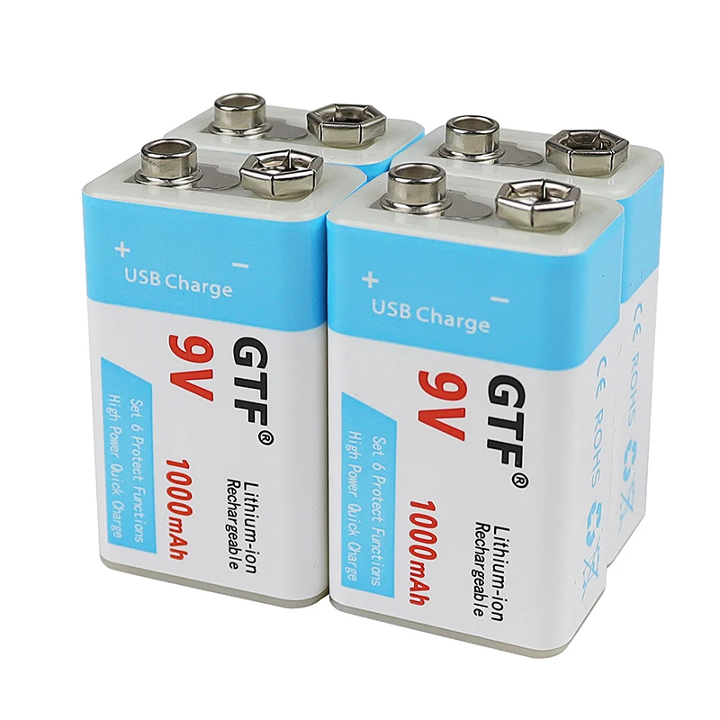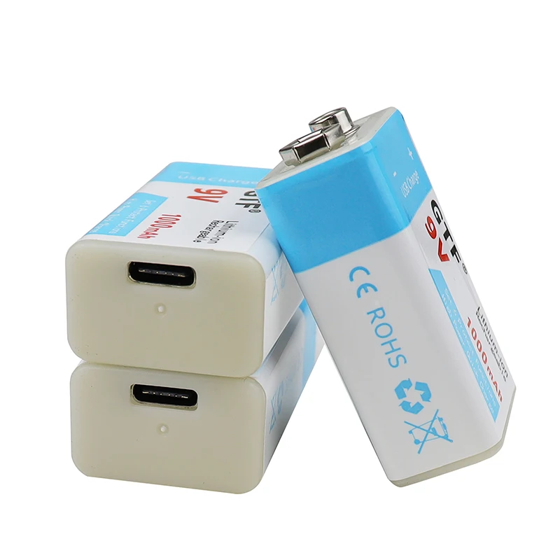 Литий-ионная аккумуляторная батарея GTF 9 В, 1000 мАч, USB Type-C