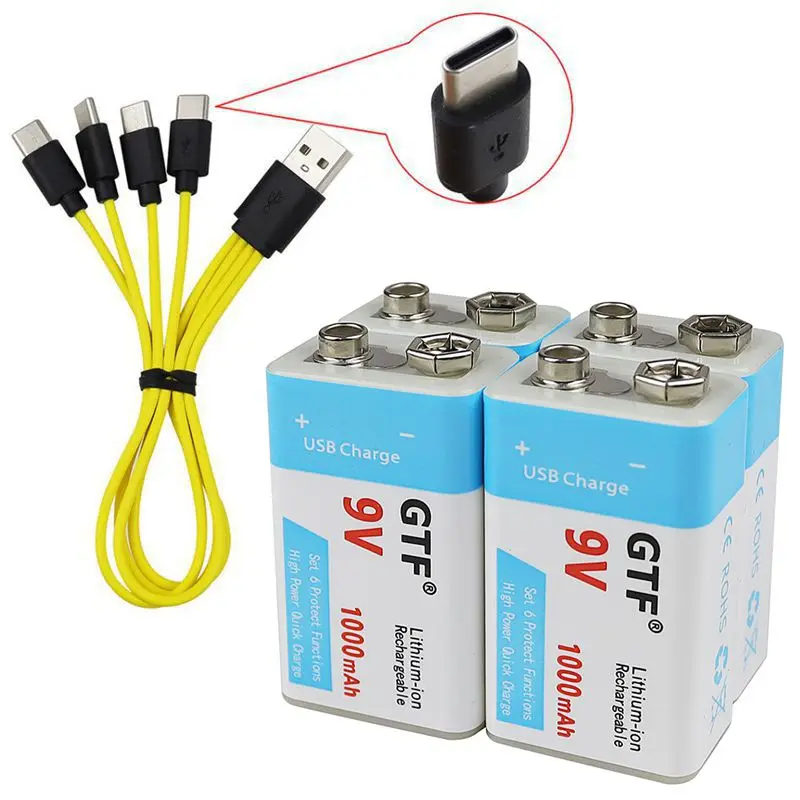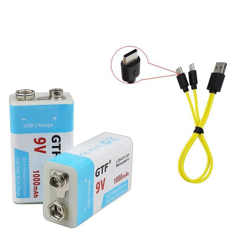 Литий-ионная аккумуляторная батарея GTF 9 в 1000 мАч USB Type-C для игрушек, дистанционного управления, литиевая батарея USB, Прямая поставка