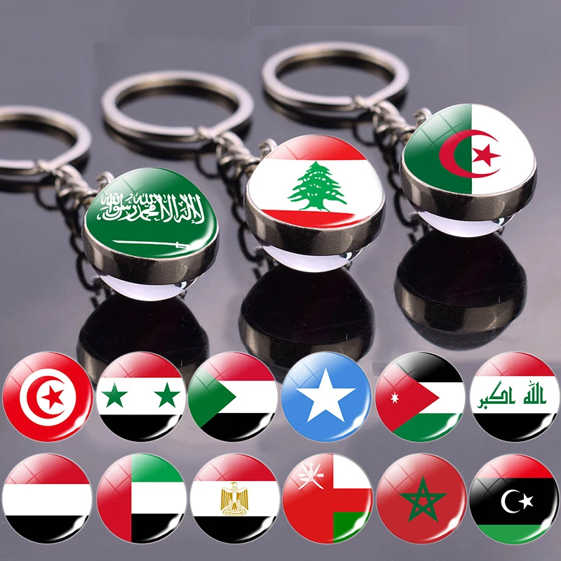 Арабские страны брелок для ключей флаг Алжир Йемен Тунис Саудовская Аравия Египет Стекло мяч цепи страна Национальный флаг ювелирные изделия
