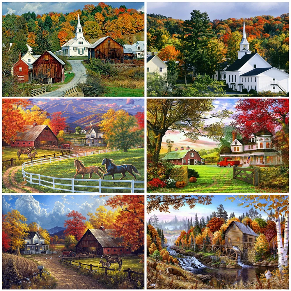 EverShine вышивка Дом стразами картина стразы алмазов картина осенний пейзаж Вышивка крестиком мозаичное украшение стены