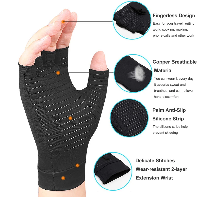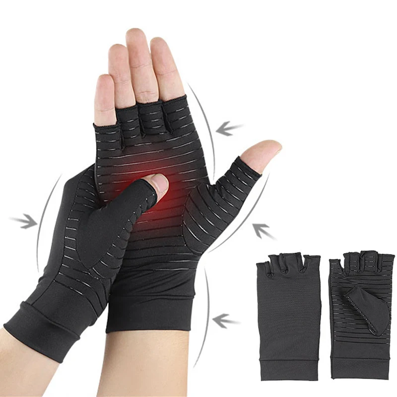 1 пара ручной Медь сжатия перчатки при артрите напульсник Поддержка боли в суставах на полпальца противоскользящие терапия для Для женщин Мужчины