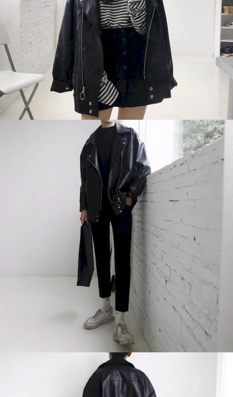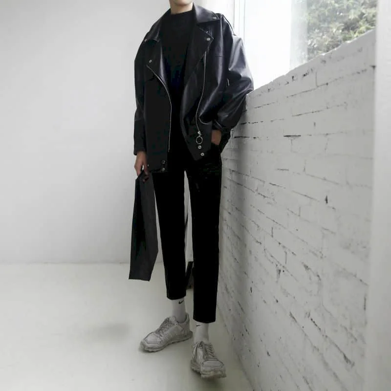 Куртка кожаная МужскаяЖенская в Корейском стиле, свободная Молодежная короткая куртка в стиле оверсайз, модная верхняя одежда в стиле хип-хоп для пар
