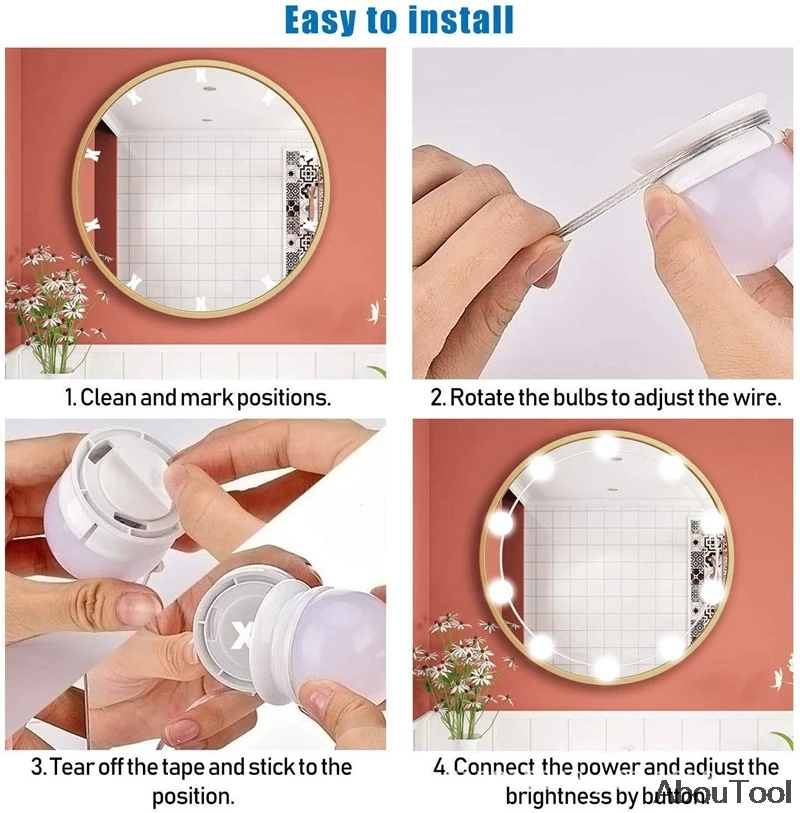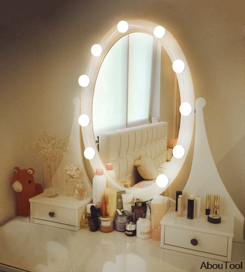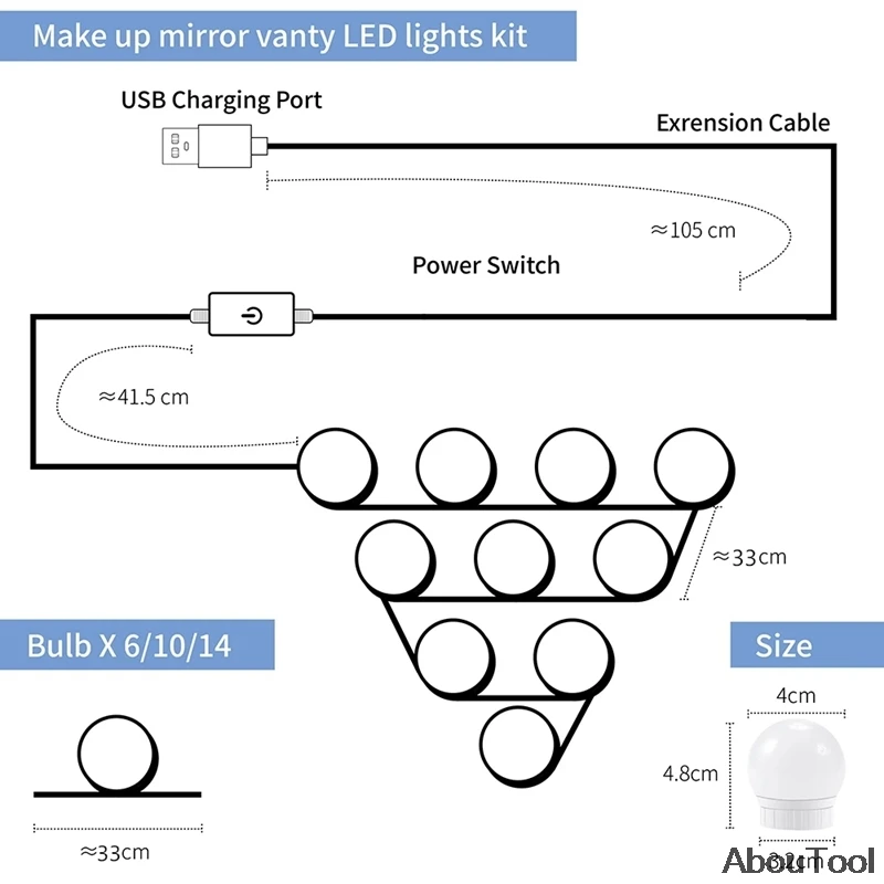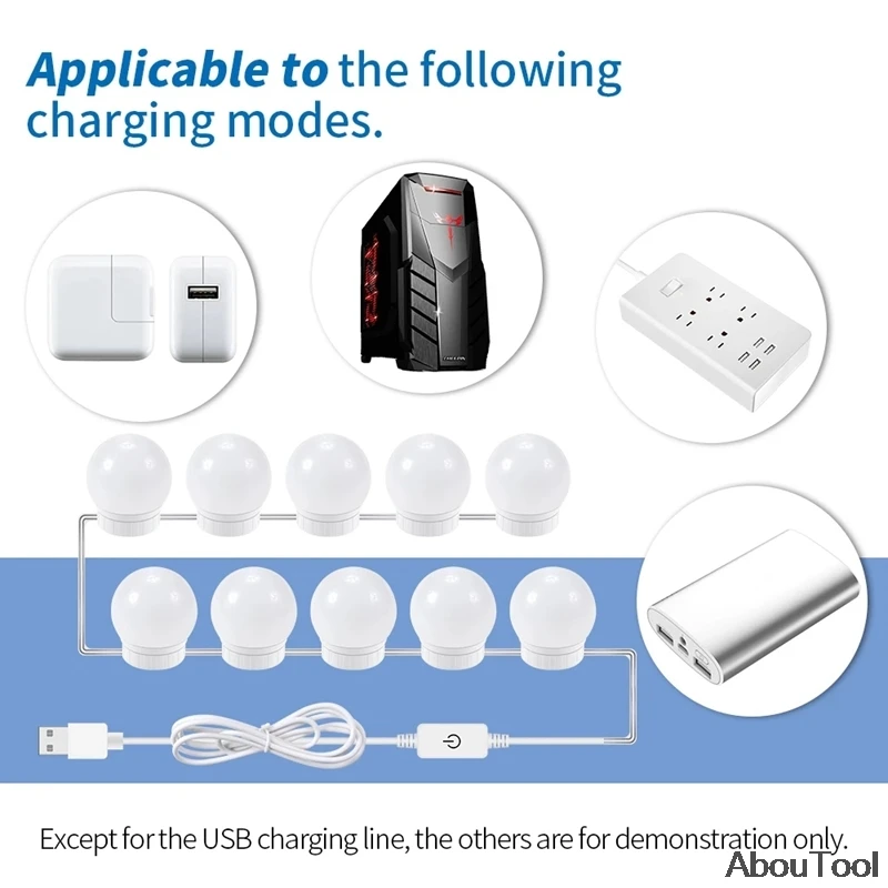 Светодиодный зеркальный светильник Vanity в голливудском стиле, новейший дизайн, усовершенствованная версия, более красивый и удобный. Usb-порт, лампы и источник питания могут быть подключены через USB многими способами, такими как ноутбук, блок питания, розетка, поэтому это очень удобно при использовании. Регулировка яркости, яркость может регулироваться от яркого до темного, от темного до яркого, в соответствии с вашими потребностями. Он оснащен функцией памяти, записывает последний режим освещения, когда вы используете его, и это тот же режим освещения, когда вы используете его снова. Максимальное расстояние между двумя лампами составляет около 33 см, что делает его подходящим для большинства зеркал. Провод регулировки длины, минимальное расстояние между двумя лампочками может быть сократилась к составляет около 1,7 см, если вы думаете, что это слишком закрыт, он может быть удлинен, в соответствии с вашими запросами, очень прост в управлении. Самое главное, что излишки проводов скрыты в лампочках, которые не видны снаружи, чтобы ваше зеркало было аккуратным, красивым и элегантным. Предусмотрены двухсторонние ленты и присоски, лампочки могут быть непосредственно и быстро наклеены на зеркала с лентами или присосками. 12 В постоянного тока входное напряжение, безопасно для использования. Хороший охлаждающий эффект, энергосбережение, длительный срок службы. Мягкий светильник, высокая светоотдача, отсутствие теплового излучения, отсутствие мерцания, отсутствие пятен, защита глаз, Профессиональный светильник для макияжа. Используется для макияжа, заполняющий светильник, украшение, зеркальная декоративная лампа, лампа для украшения сцены, лампа для украшения шкафа, студийная декоративная лампа и так далее.Посылка включает в себя: 1*10 лампочек Светильник