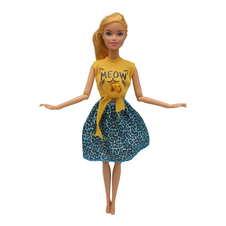 NK 1 комплект Кукольное платье Желтый милый кот узор + модная синяя юбка Повседневная одежда платье аксессуары для куклы Барби игрушки для девочек 4X
