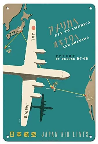 Fly to America and Okinawa - Deluxe DC-6B - Japan Airlines - Airline Metal Tin Sign
