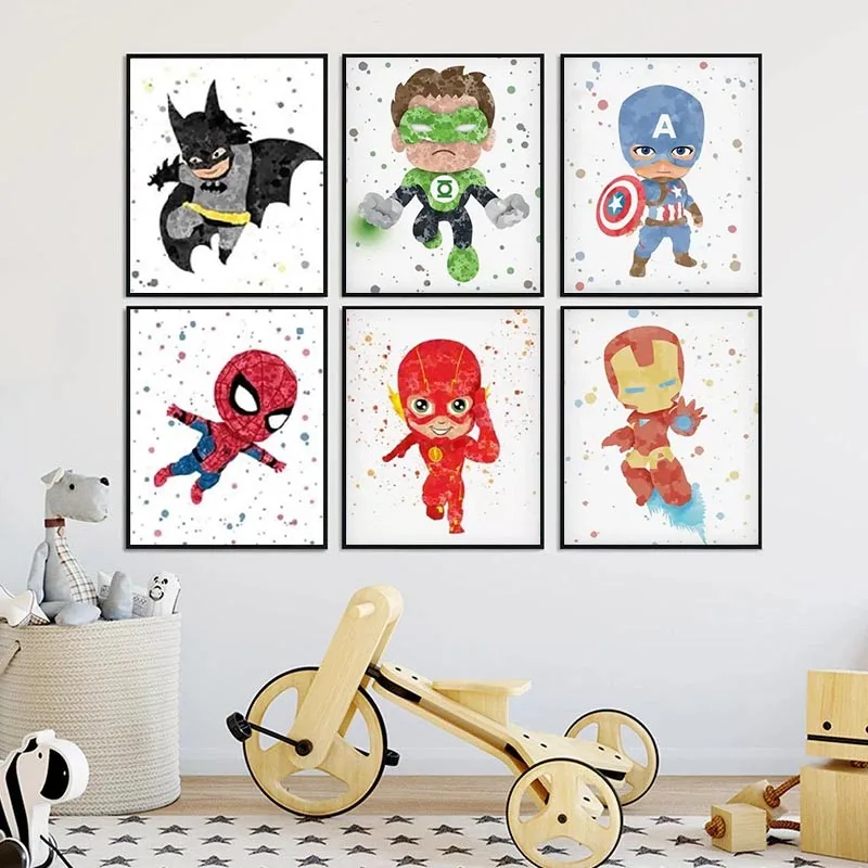 Картина на холсте с героями мультфильмов Marvel, Человек-паук, плакаты и принты Железного человека, картина на стену для детской, декор для спальни