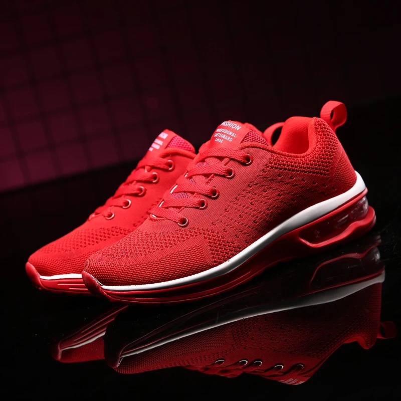 Кроссовки унисекс, простая однотонная дышащая легкая спортивная обувь с воздушной подушкой, для бега, красные, большие размеры 35-46