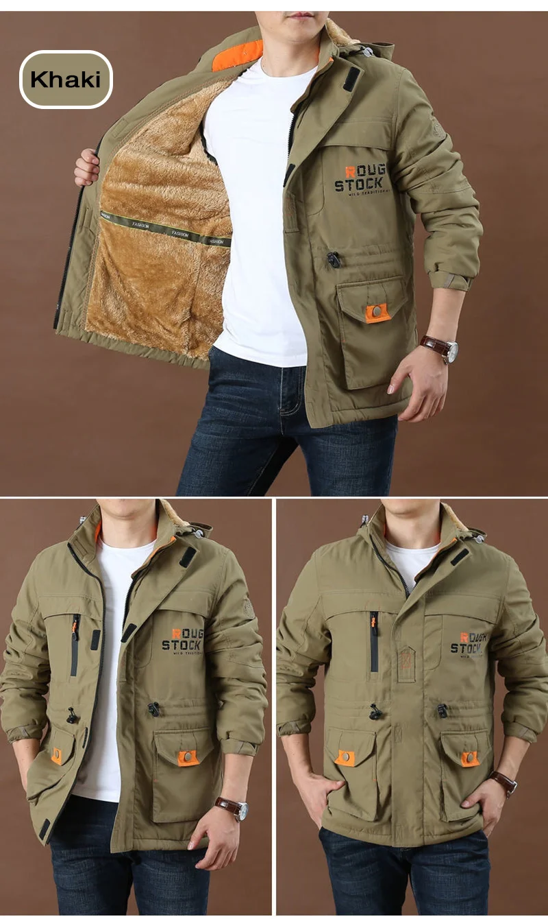 Мужской уличный костюм, зимнее плюшевое плотное теплое пальто, ветрозащитные повседневные парки, верхняя одежда, куртки, Мужская Рабочая куртка с большими карманами
