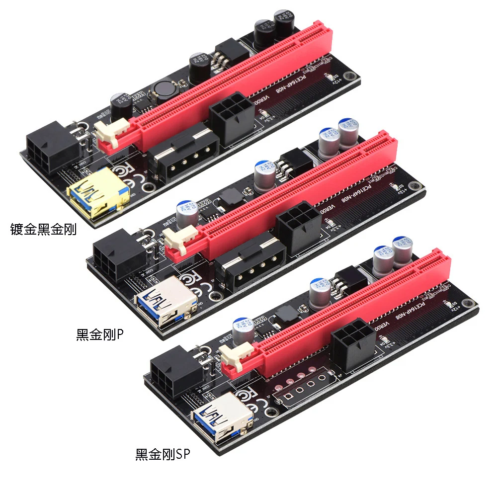 1:4 черные твердотельные конденсаторы используются для питания видеокарты, что делает источник питания видеокарты более стабильным и безопасным.2: карта передачи с двойным 6PIN и большим 4PIN 12V DC-DC для укрепления питания, так что блок питания видеокарты не зависит от материнской платы, чтобы уменьшить нагрузку на материнскую плату при подключении нескольких графических карт.3: слот для видеокарты с использованием оригинального импортированного разъема, видеокарты и контактного разъема лучше.4: разъем PCI-E имеет многослойный экранированный провод, самое длинное соединение может быть 3 м без сигнала затухания.5: USB кабель мягкий и стабильный, легко подключается, видеокарта может быть размещена по желанию.6: слот оснащен фиксированной пряжкой, более удобным для удаления видеокарты и фиксированной видеокарты, видеокарта не будет выпадать из слота.7: USB кабель на рынке не был плетеным экранированием, и качество довольно плохое, поэтому будет очень нестабильное явление, обратите внимание. (не все линии используется для майнинга)