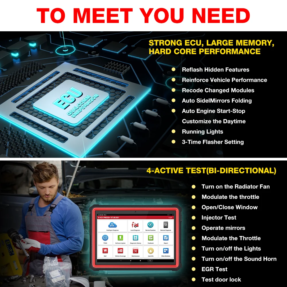 ????. 2021 расширенных OE-LEVEL функций: направляемые функции + вариантное кодирование + автоподвес для FCA SGW + онлайн-кодирование + баланс мощности + сопоставление компонентов + скрытые функции вспышки + Сервис защиты от кражи ИММО + настройка и переключение + модификация + Автономное кодирование + настройка + Персонализация????. Добавлено на 2021 больше расширенных функций: AFS (адаптивная система переднего освещения) сброс + Инициализация люка + Калибровка подвески + Калибровка окон + Калибровка сидений + сброс шин + изменение языка + A/F сброс + Слив охлаждающей жидкости + транспортный режим + сброс Adblue + сброс датчика NOx + остановка/старт сброса????. Сервисы сброса 30 + + адаптация + соответствие + Инициализация: сброс масла, ABS Прокачка, Кодирование инжектора, сброс передач, сброс SAS, сброс TPMS, Сброс DPF, сброс BMS, сброс ETS, сброс AFS, адаптация EGR, коробка передач, Люк, калибровка сиденья и т. д.????. Активное испытание (двунаправленное управление): запуск соленоидов и приводов для активного тестирования ing, отправка команд в системы/компоненты для проверки их рабочего состояния, без использования системы управления транспортным средством.????. Программирование ECU (онлайн-кодирование): сопоставление, изучение или кодирование недавно замененного ECU; Настройка вашего автомобиля, развертывание скрытых функций или отключение раздражающих функций; заменяет адаптивные данные для определенных компонентов после ремонта или замены????. Поддержка модулей расширения: Поддержка видеоскопа (в основном применяется для проверки невидимых частей двигателя, топливного бака, тормозной системы и т. д.) /TSGUN (активируйте все датчики, переучите tpms, программируйте только датчики запуска)/X431 PRO G(VAG Group более 3,5)/X431 Сверхмощный модуль (Диагностика бензиновых автомобилей и дизельных грузовиков 24 В), Чтобы вы могли выполнять более комплексные проверки транспортных средств.????. Полная диагностика систем + Автоматическое VIN сканирование + Обновление одним нажатием + диагностический отчет + диагностиотзывы????. Более 150 брендов и более 10000 автомобилей поддерживаются + 24 языка + 2 года бесплатного обновления????. Ресурсы онлайн-технического обслуживания: навыки работы, помощь при ДТС, руководство по автомобильной технологии, чехол для ремонта и видео о способах.