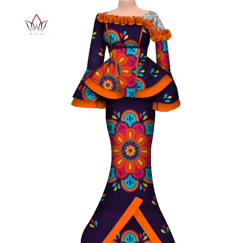 Африканская одежда, женский костюм с расклешенными рукавами, длинные Дашики, вечерние платья, халаты, комплекты из 2 предметов, топ и юбка 2021 г., Africaine Femme WY060