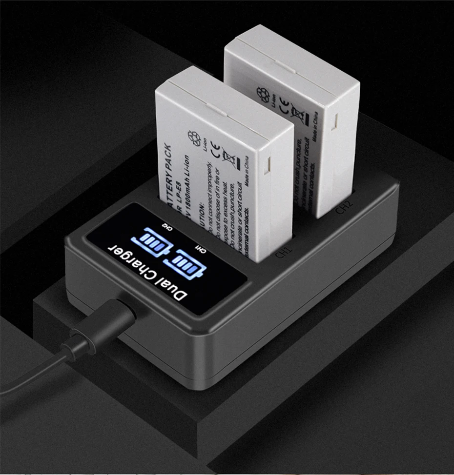 Название: зарядное устройство для цифровой камеры Модель: LP-E8 Вход: 5 В/2 А Выход: 8,4 в, мА * 1/мА * 2 Размер: 12 см x 6,7 см x 2,5 см Вес: 84,5 г Обновленная версия Емкость аккумулятора составляет 1800 мАч. Качество изготовления, стабильный источник питания и непрерывная мощность. Зарядное устройство поставляется с кабелем, скрытым хранилищем, зарядка более удобна Выходной порт usb можно использовать в качестве аварийного источника питания для зарядки мобильный телефон. Характеристики продукта Высокая емкость Скрытый зарядный кабель ЖК-дисплей Аварийное зарядное устройство Многофункциональная зарядка Совместимая модель: Для Canon : EOS 550D / EOS 600D / EOS 650D / EOS 700D /X4 / X5 / X6i / X7i / T2i / T3i / T4i / T5i и т. Д.