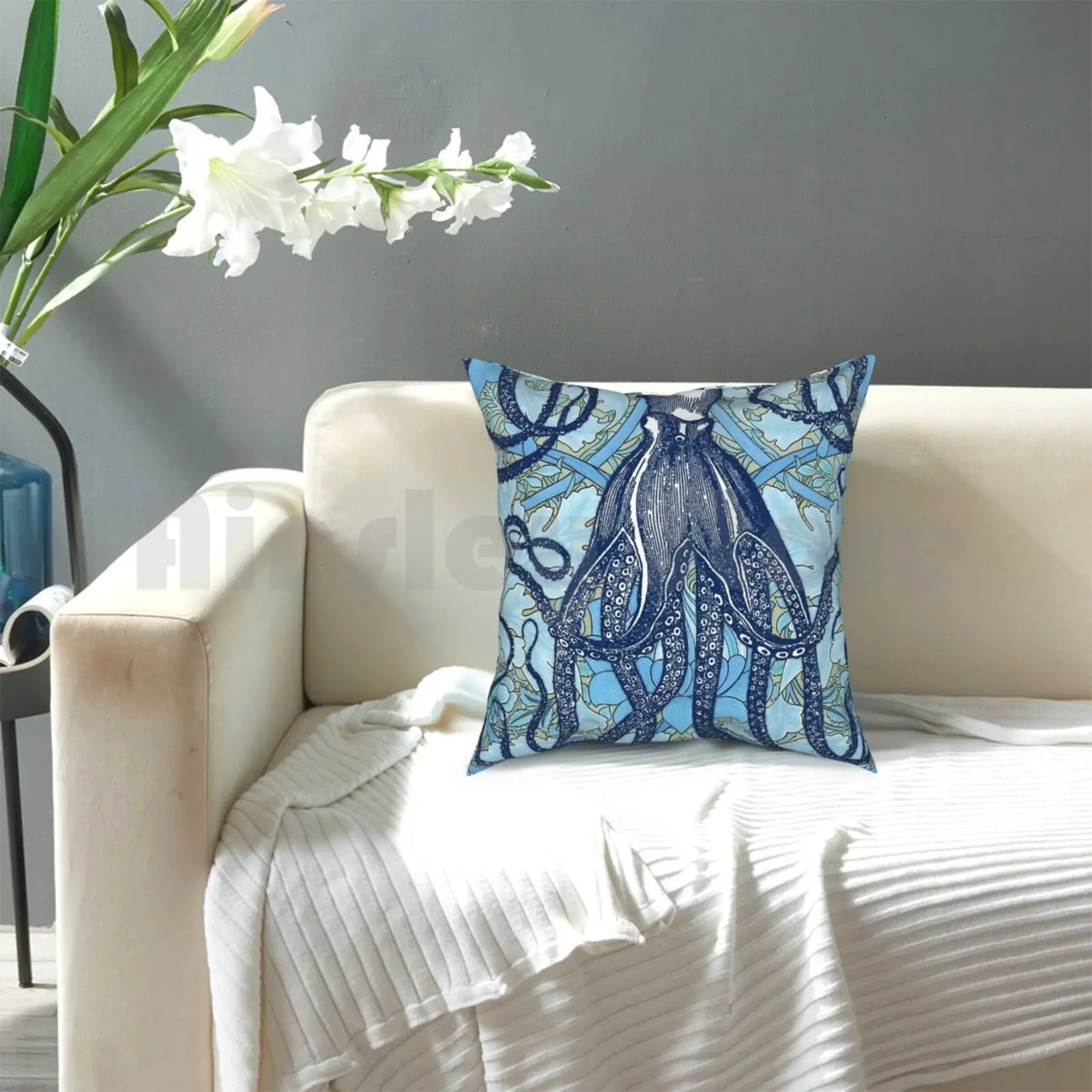 Античная Подушка-Осьминог с Вильямом Моррисом, накладка с принтом для дома, мягкая декоративная подушка с изображением животных, осьминог, океан, море