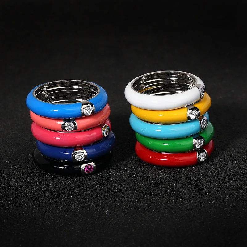 Креативное модное кольцо, винтажное цветное эмалированное кольцо, позолоченное минималистичное фианитовое штабелируемое кольцо для женщин и девушек