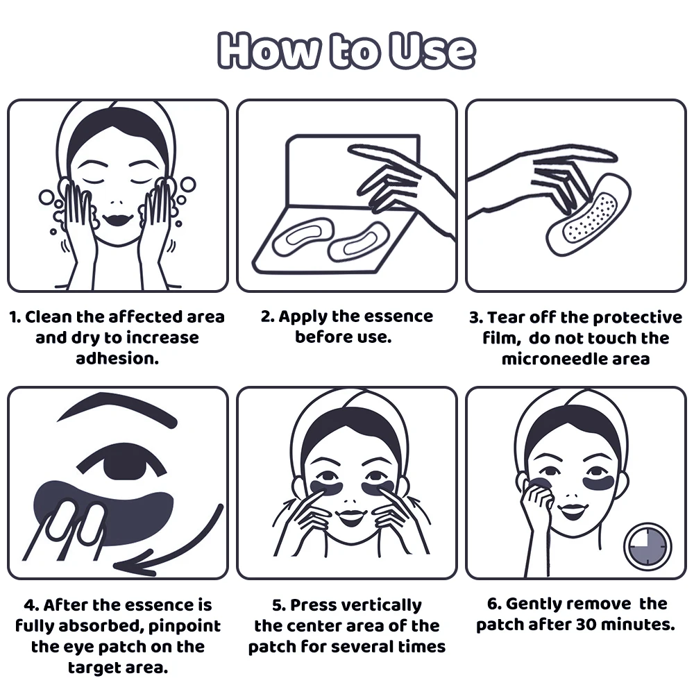 Характеристики продукта:Состав: гиалуроновая кислота, коллаген, Гидролизованный овсяный протеин, трехпептид, шестипептид, oligopeptide-1, экстракт корня софоры флавессена, вода, глицеринЭффективность: удаление темных кругов, заполнение тонких линий, носогубные складки, рога глаз, уменьшение морщин, восстановление, подтягивание укрепляющей кожи, омолаживание, выцветание тонких линий, увлажнение.Неинвазивные растворимые микро-иглы, с использованием технологии доставки трансдермальных лекарств для дополнение кожи гиалуроновой кислотой и шестью пептидами 60 мг одновременно, непосредственно к глубокой коже, скорость поглощения до 99%, чтобы достичь хорошего эффекта морщин.Эту наклейку можно использовать постоянно без зависимости.Технические характеристики:Количество: 1 пара в упаковкеЕмкость: 0,4 млРазмер: 4.6x1.5cmДлина иглы: 300-450 микрометровПлотность: 1000 игл на пластырь, 2000 игл на паруМожно использовать: тонкие линии вокруг глаз, припухлость под глазами, линии лба, носогубные складки, шейную полоскуУсловия хранения: Воздушное и сухое внутреннее пространство, где температура не выше 38 ℃Уведомления:1. Не прикасайтесь к средней части пленки вручную.2. При наклеивании ощущается легкое пощипывание.3. Попытайтесь использовать меньше выражений после снятия пленки4. Использовать перед сном, вставать после того, как вставать по утрам, эффект лучше5. В зависимости от личных обстоятельств, используйте 1-2 раза в неделю.6. Используйте его в течение 5 минут после открытия упаковки.7. Не используйте продукт, если вы не удаляете макияж, не ранены или у вас есть симптомная кожа.8. После удаления пластырей на глаза, остальное-гиалуроновая кислота.9. Это нормально, что кожа становится слегка красноватой после использования. Однако, если возникают отеки или стойкие покраснения, немедленно перестаньте использовать их.В комплект входит:1 пара микроиглы для глаз