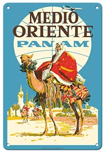 Средний Восток (Средний Восток)-верблюд Райдер-Pan American World дыхательные пути-авиакомпания c.1950s металлический жестяной знак