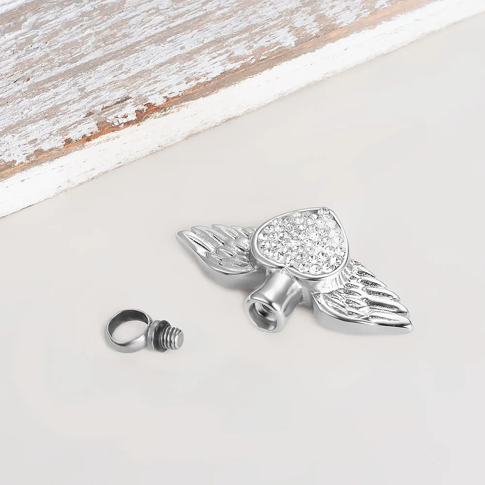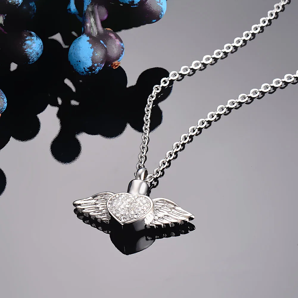 Крылья Ангела и белый Crytsal сердечко Кремация Мемориал Цепочки и ожерелья ювелирных изделий может открыть памятный сувенир, пепел урна кулон дропшиппинг