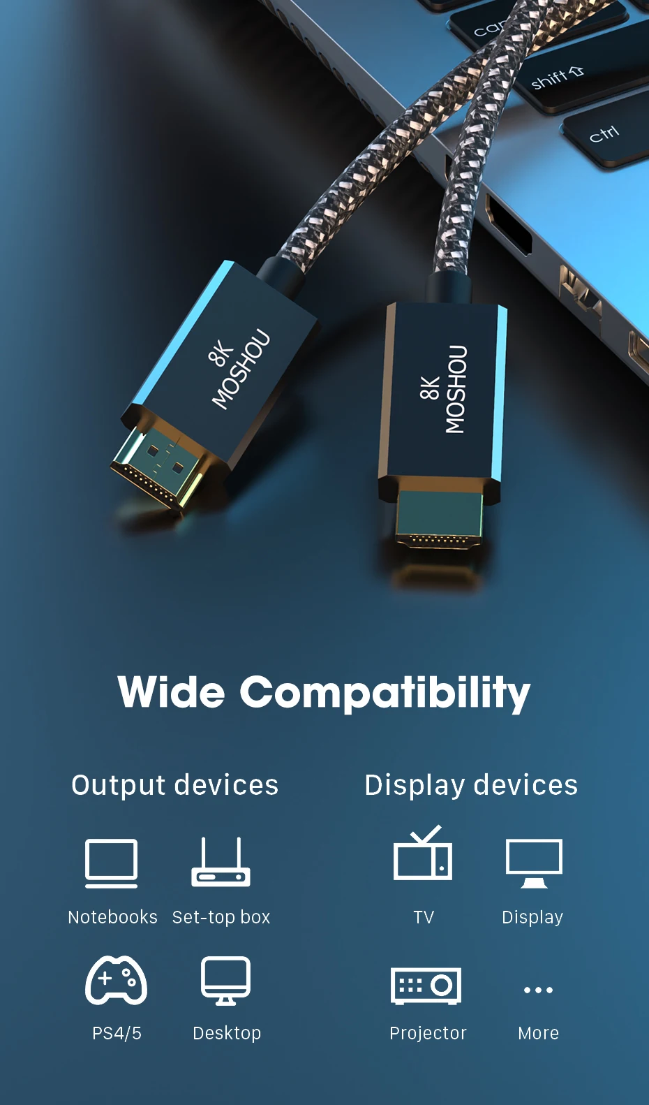 Кабель MOSHOU HDMI 2,1, 8K, 60 Гц, 4K, 120 Гц, 48 Гбитс