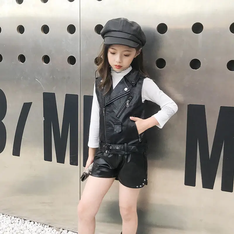 Жилет из искусственной кожи с заклепками для маленьких мальчиков и девочек, куртка без рукавов, безрукавка с ремнем, черный цвет, на возраст 2, 3, 4, 5, 6, 7, 8, 10, 11 лет