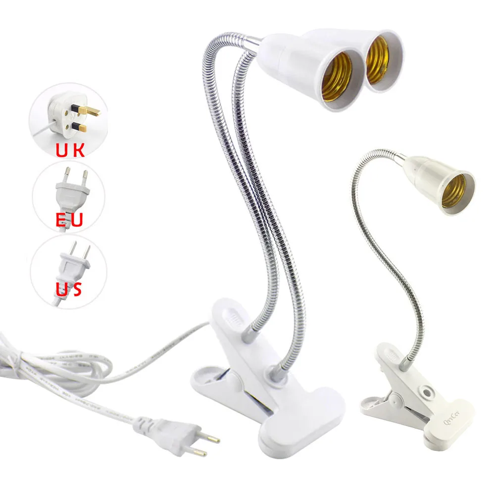 2 головки E27 гибкий держатель цоколя лампы затычки держатель стол клип розетка ночь ЕС США Великобритания E27 для книги гостиной растут огни