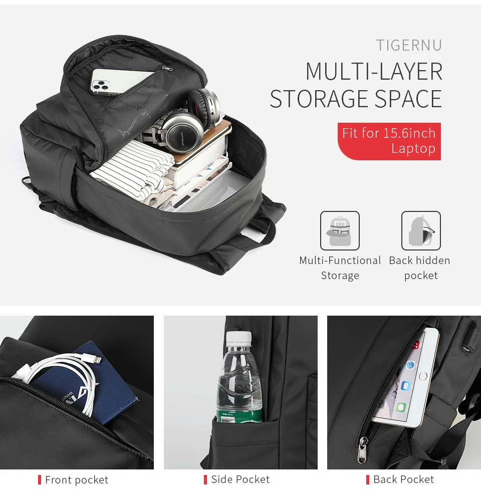 Повседневный светильник рюкзак Tigernu для ноутбука 15,6 дюйма с защитой от кражи, мужской Высококачественный водонепроницаемый дорожный школьный рюкзак из ТПУ, сумки 2022