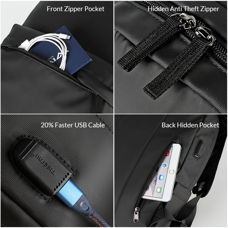Это не первый мой рюкзак Тигерну. Прошлый прослужил 5 лет. На смену нужен был простой и качественный. Достоинства этой модели: пошит качественно. Неплохая конфигурация - внешние и внутренние карманы, гнездо зарядки юсб с кабелем в комплекте. Недостатки: дубовый винил. Ну очень дубовый, складки и помятости не расправляются (а что с ним будет на морозе?). В описании на фото мне казалось, что это плотная глянцевая ткань, но, оказалось, что нет... По причине жесткости материала легко застегнуть молнию не получается, нужно постоянно расправлять края. Кстати, сам замок очень дешевый, не фирменный двойной. Нет и сетчатой прокладки с поролоном к спине и лямках. Подозреваю, что летом под ними все будет мокрым от пота. В комплекте идет номерной замочек, только вешать его некуда, молния этого не предусматривает, колечек нет. Итого. Рюкзак может и неплохой, но для меня все перечеркивает материал и бюджетность исполнения. Продавца рекомендую, а данную модель - нет.