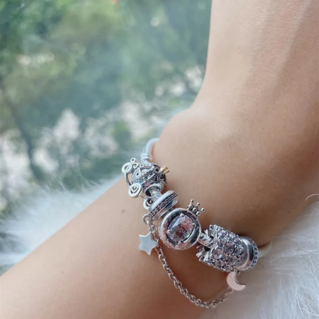 Цепочка Pandora из серебра 925 пробы с бусинами в форме цветка Луны, Листьев, бабочки, оригинальные бусины для браслетов, подвески для женщин, ювелирные изделия сделай сам