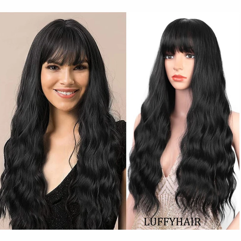 Парики с челкой Luffy для чернокожих женщин, натуральные волнистые ...