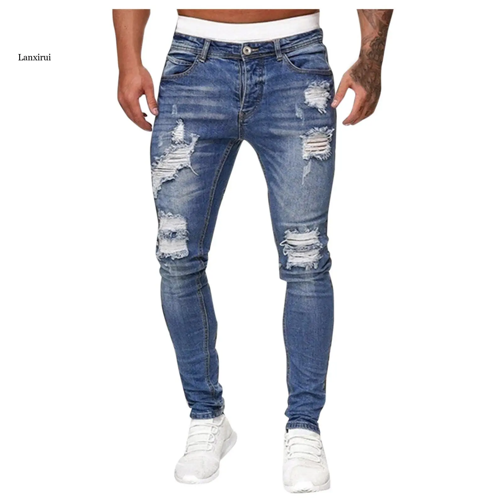 Мужские спортивные брюки, сексуальные джинсовые брюки с дырками, по...