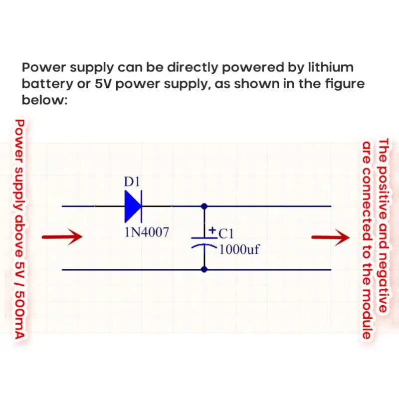 Рабочее напряжение: 3,7 ~ 4,2 в (максимальный ток 1 А, обращайтесь с ним должным образом)