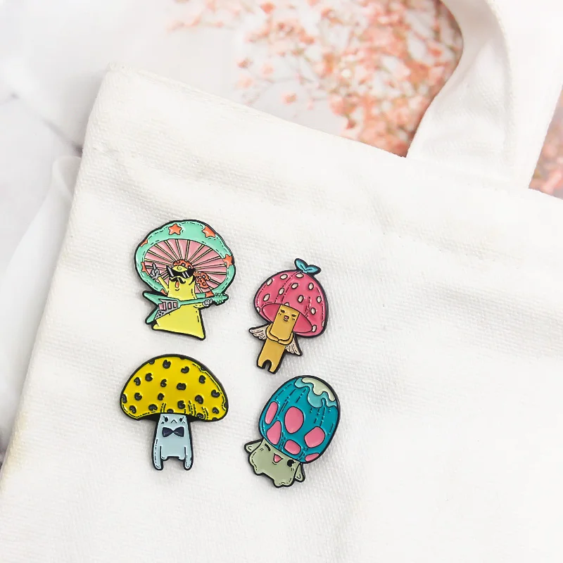 Мультяшные эмалевые булавки в виде грибов, забавная брошь в виде ро...