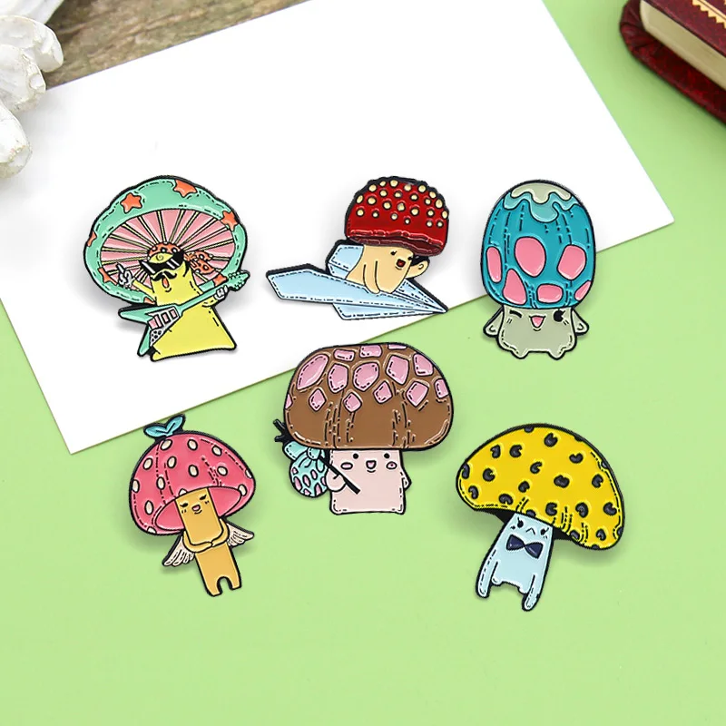 Милый цвет брошь грибы на заказ бумажный самолёт певец трюфель гриб ботаника эмалированные Значки для детей друзей ювелирные изделия