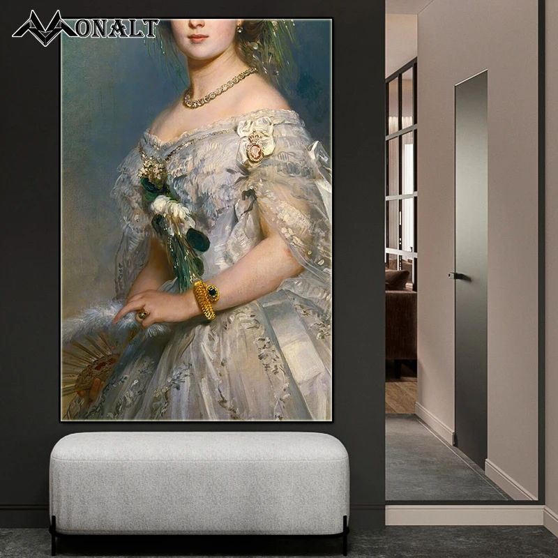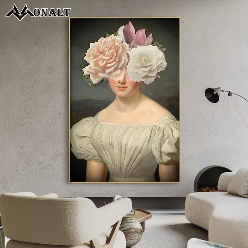 Изображение благородной женщины, портрет цветов, картина маслом, европейская классика, Женская Печать на холсте, роскошный постер, персонаж, настенное искусство, декор для гостиной