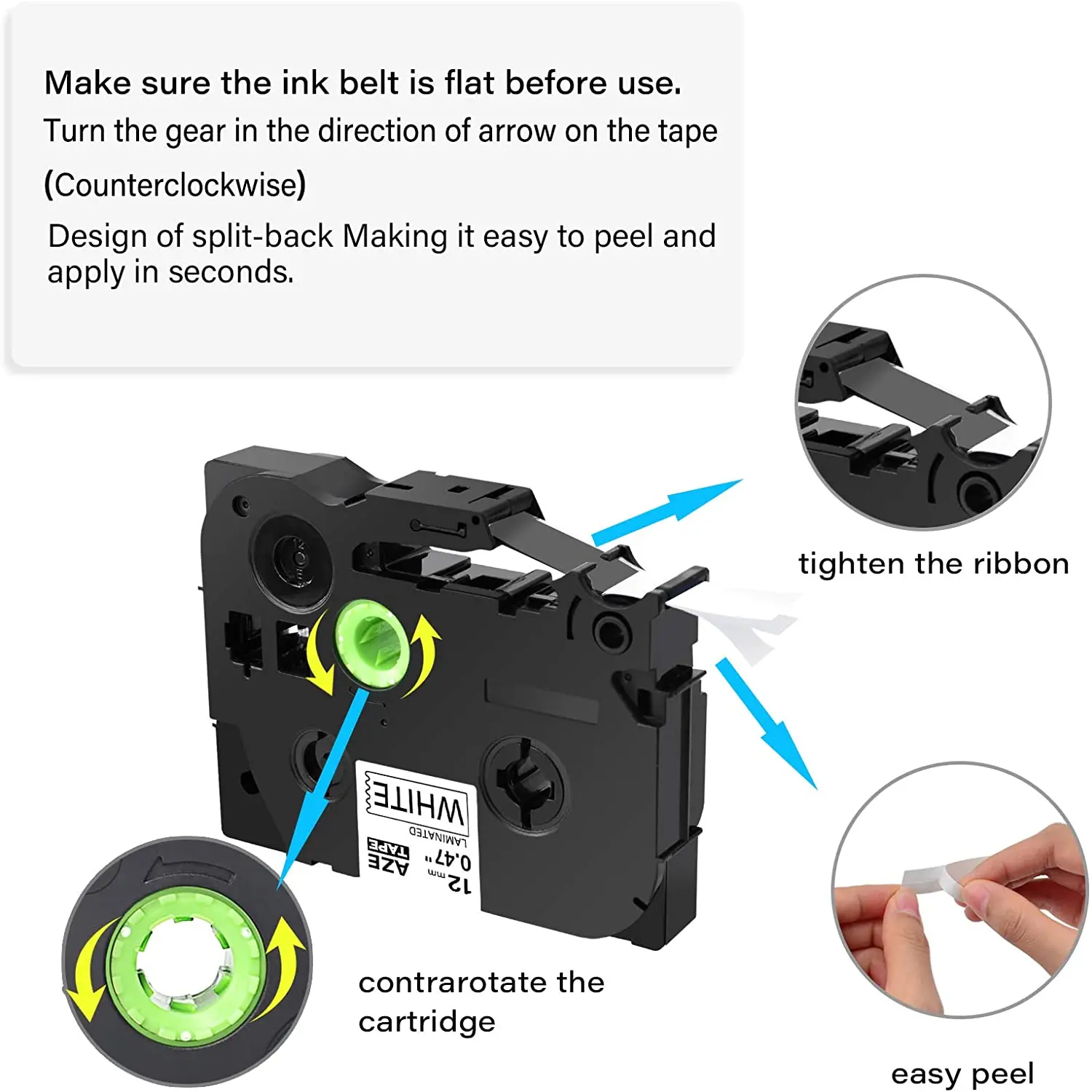 Размеры: 12 мм (0,47 '') x 8 м (26,2 '); Цвет: черного цвета на белом фоне.