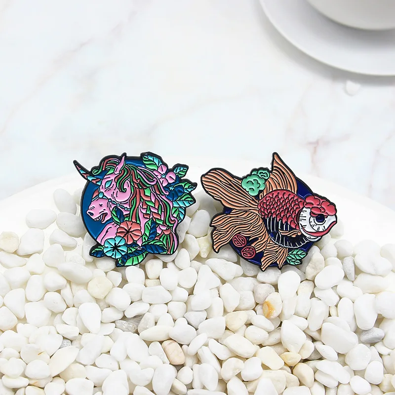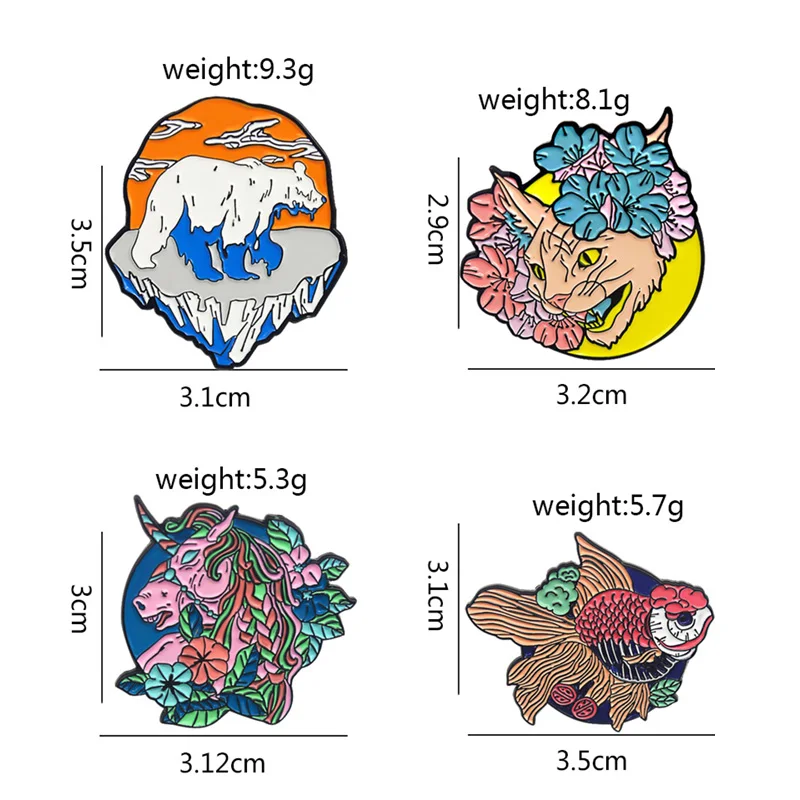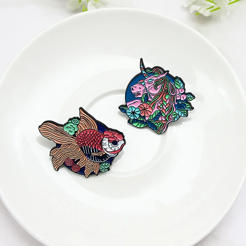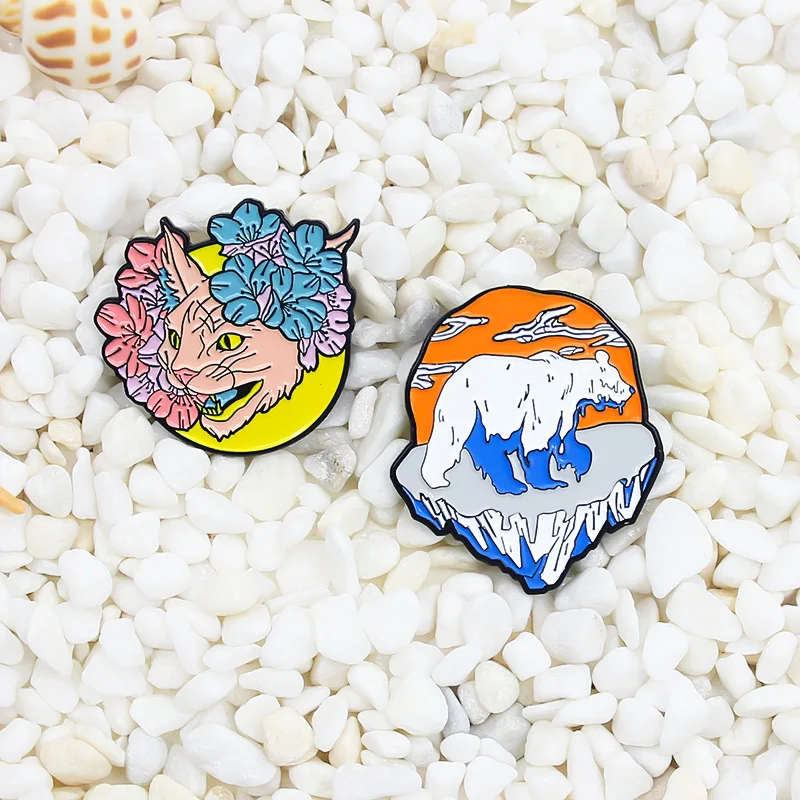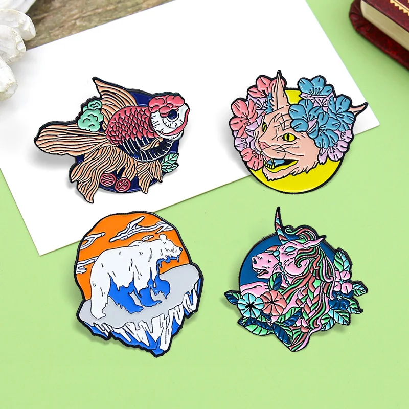 Новинка, броши в виде кота, рыбки, лошади, белого медведя, цветов, индивидуальные эмалированные заколки для кошек, золотой рыбки, Пегаса, медведя, искусственные украшения в подарок