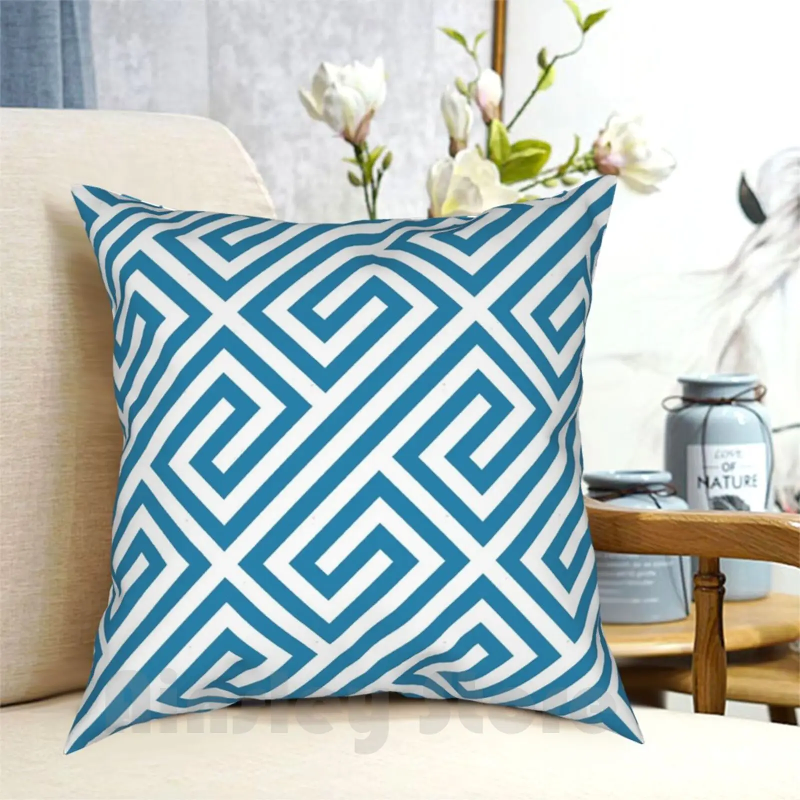 Синие греческие клавиши геометрический узор наволочка для подушки с принтом для дома мягкий разноцветный яркий Яркий Веселый Чехол для мобильных телефонов
